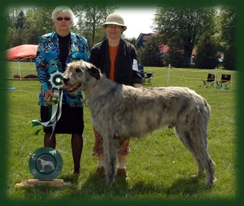 Also Best Hindquarters. Judges critique:- " In a class 6 adult females and two males he is the only hound with the correct structure. In the sight hound breeds they should have hip structure of a trapezoid. This allows the hindquarters